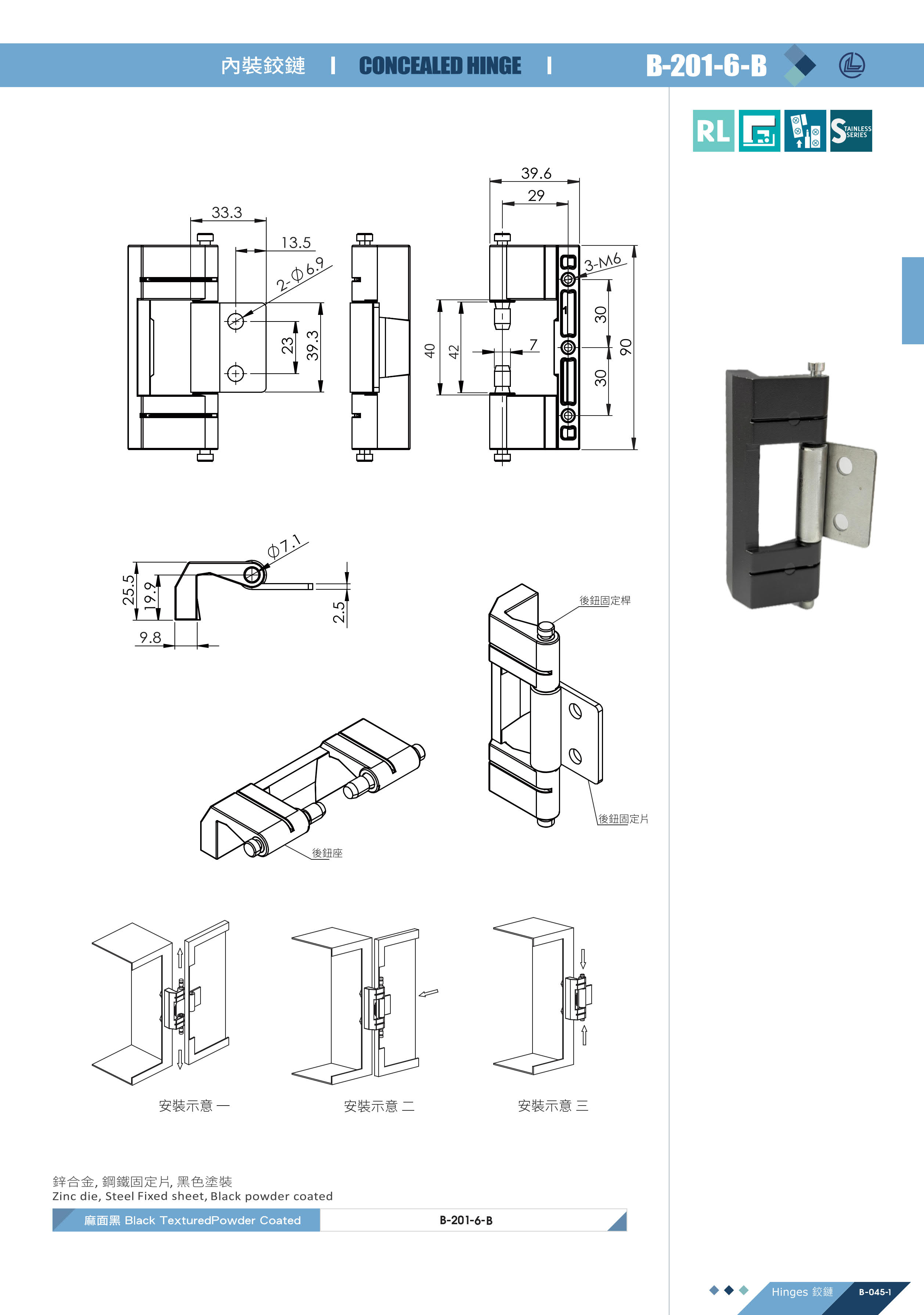 B-201-6-B 內裝鉸鏈