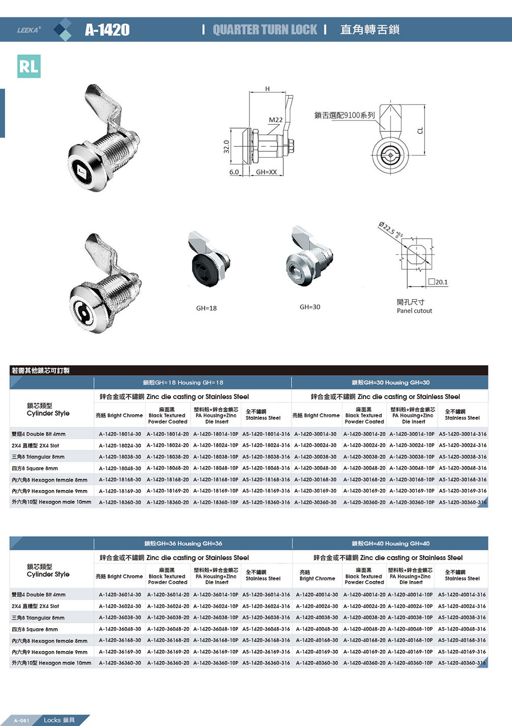 A-1420-300XX 直角轉舌鎖