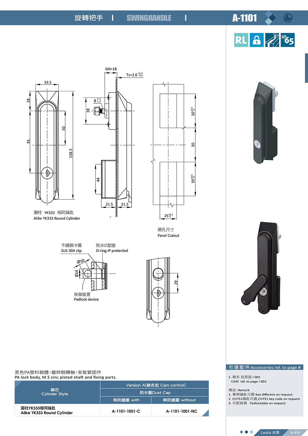 防水旋轉把手,而且可以選配防塵蓋,適用於室外或室內需要防護的機櫃、控制箱等應用。