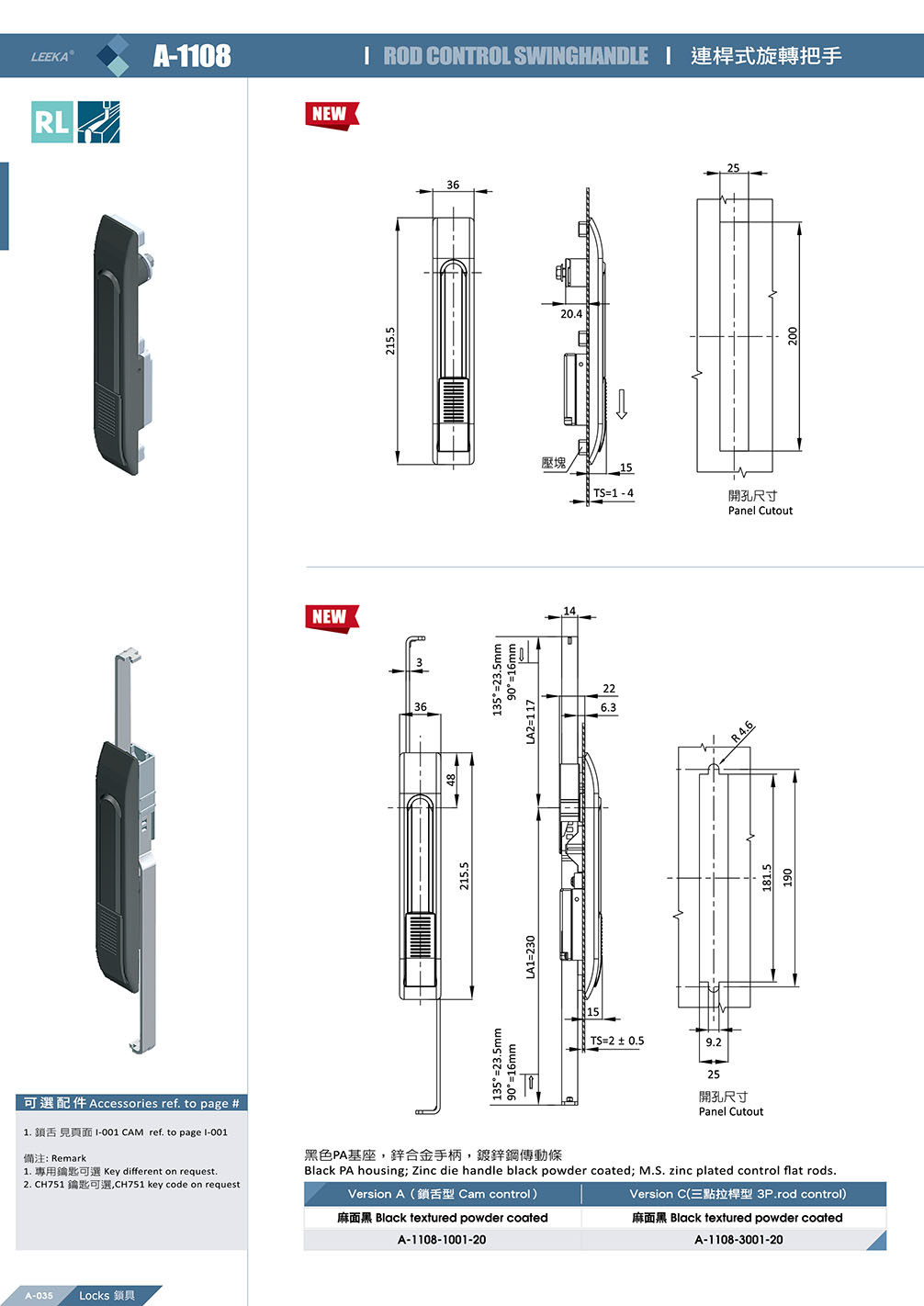 在普通連桿式旋轉把手鎖的基礎上增加了防塵保護功能,適合安裝在戶外或粉塵較多的環境。