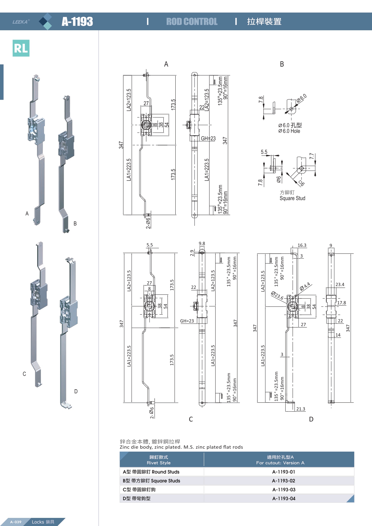 鋅合金本體,鍍鋅鋼拉桿