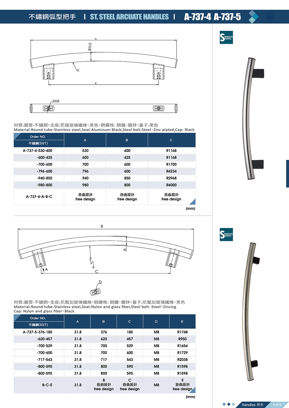 材質:圓管-不鏽鋼,支座:尼龍加玻璃纖維,鋼螺栓:鋼鐵、鍍鋅,蓋子:尼龍加玻璃纖維、黑色
