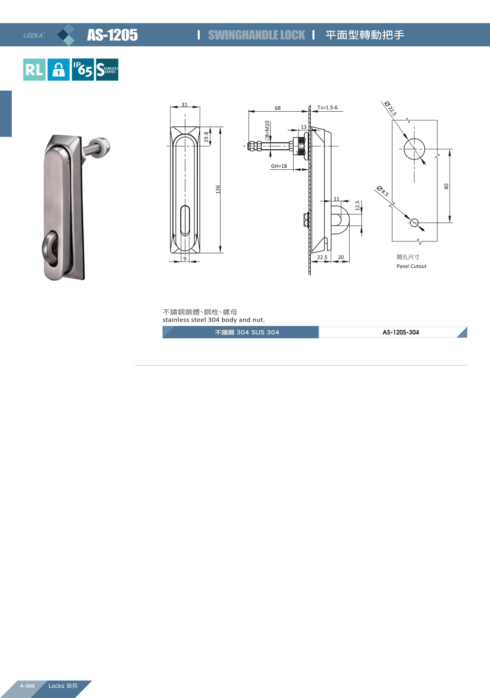 平面型轉動把手鎖(Swinghandle Handle Lock)