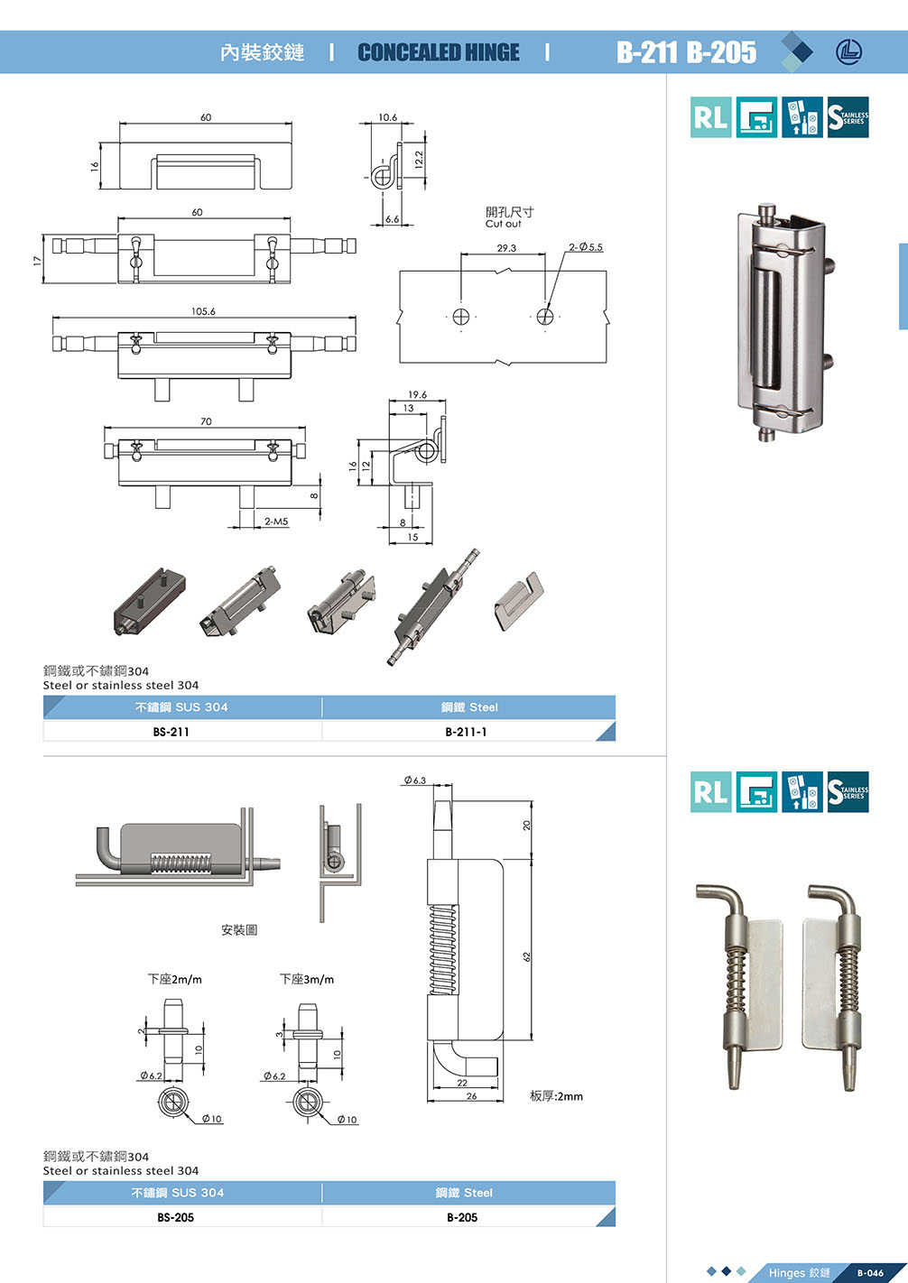 - 不鏽鋼 304:型號:BS-205