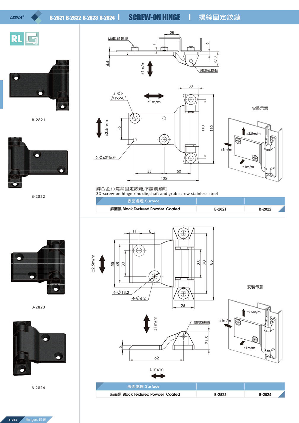 B-2823-R 螺絲固定鉸鏈