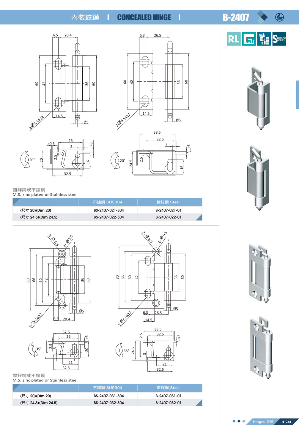 • 鍍鋅鋼:B-2407-031-01(20mm),B-2407-032-01(24.5mm)