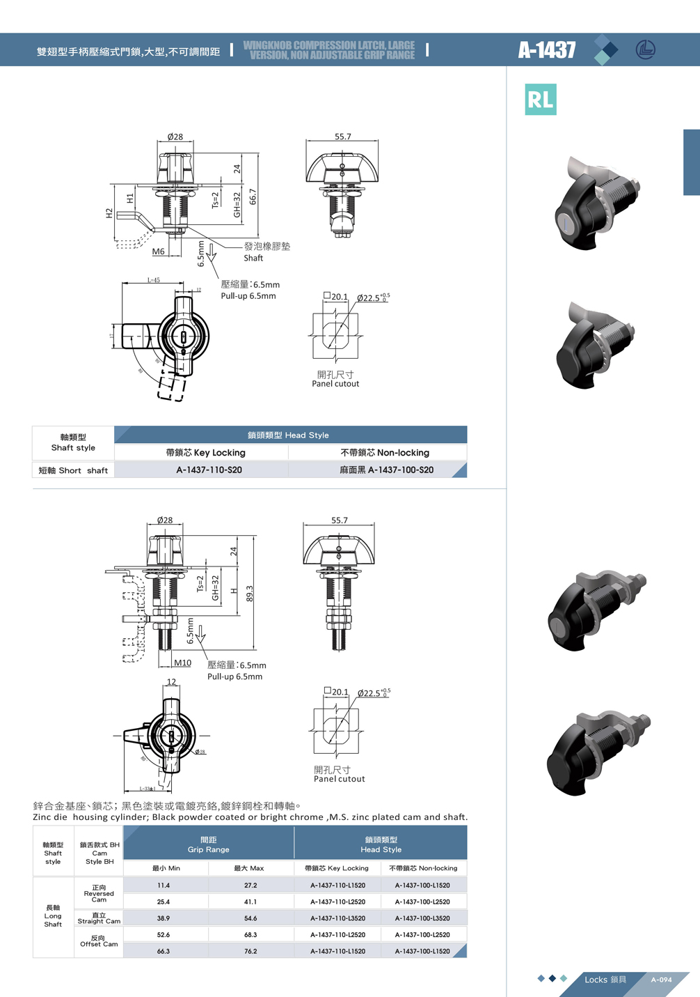 操作方式:有帶鎖芯(Key Locking)與不帶鎖芯(Non-locking)兩種版本。